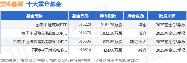 根据2025基金Q3季报公募基金重仓股数据,重仓该股的公募基金共4家,其中持有数量最多的公募基金为国泰基金的国泰中证煤炭ETF。国泰中证煤炭ETF目前规模为114.13亿元,最新净值1.067(1月15日),较上一交易日下跌0.56%,近一年上涨4.78%。该公募基金现任基金经理为吴中昊。吴中昊在任的基金产品包括:国泰中证500指数增强A,管理时间为2022年1月28日至今,期间收益率为40.62%;国泰中证内地运输主题ETF,管理时间为2022年11月30日至今,期间收益率为-2.27%;国泰沪深300指数增强A,管理时间为2022年12月30日至今,期间收益率为23.15%;国泰国证新能源汽车指数C,管理时间为2022年12月30日至今,期间收益率为17.81%。